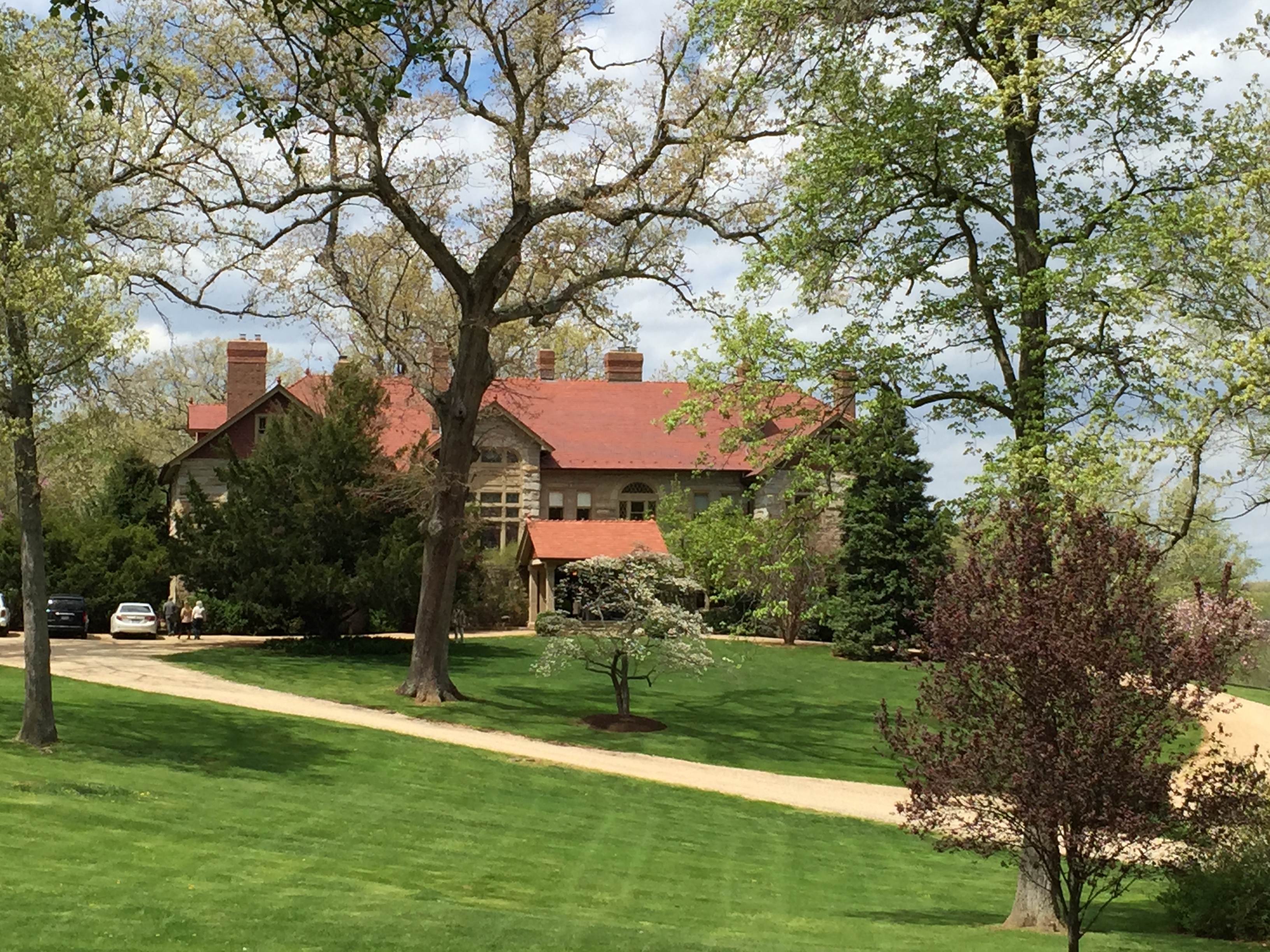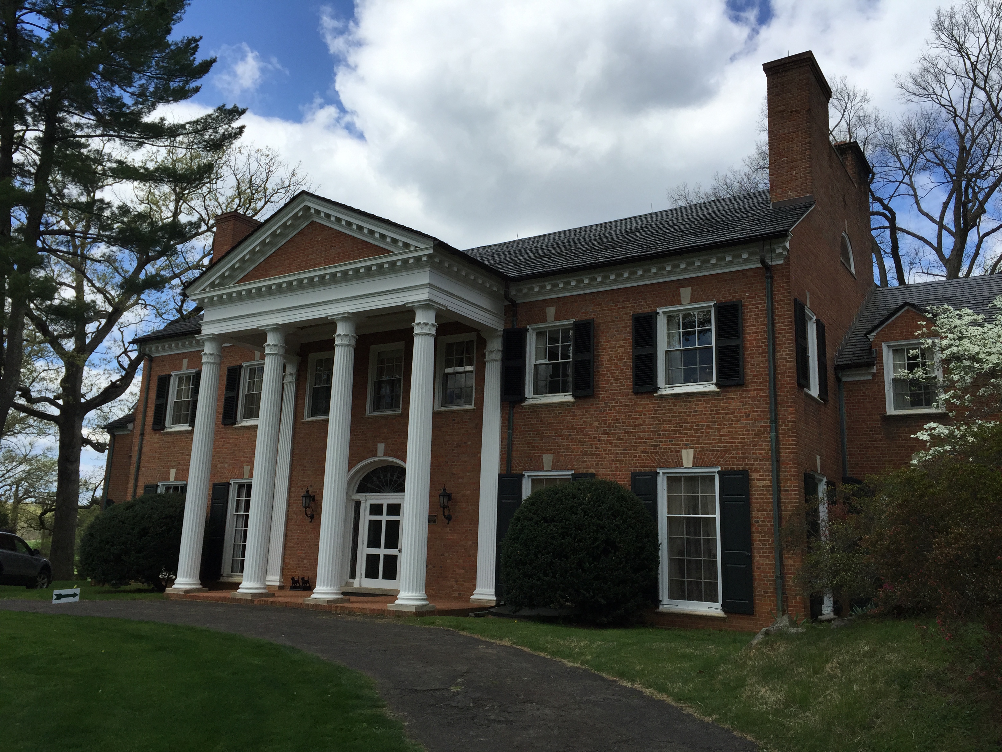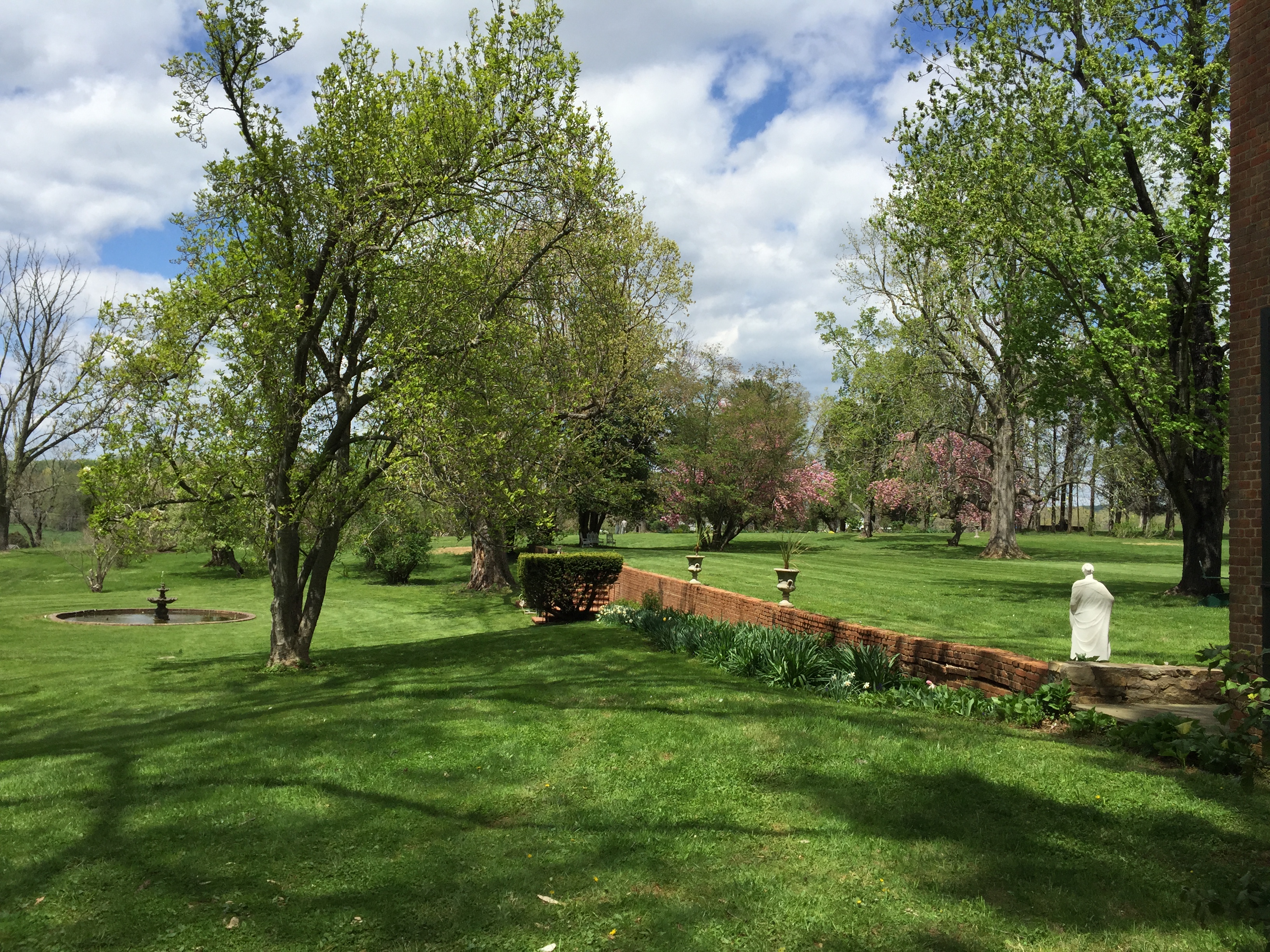 Unfortunately, photographs were not permitted inside the homes, but I can tell you they were beautifully appointed. The Oaks, a Classical Revival home originally built in the 1930’s, partially burned a few years ago, but has been lovingly restored. The restoration of the Oaks is well-documented in an article that appeared in the Piedmont Virginian. The house contains several generations’ worth of fabulous 18th and 19th century mahogany, cherry, and inlaid custom-built furnishings. The art collections are noteworthy, as well, including many portraits by French artist Yves Muller D’Escars who, per one of the docents, was said to have painted twenty-five canvases for the family starting in 1927. (I can’t imagine he would have completed that many in one year!) The dining room was particularly vivid, decorated with Zuber wallpaper depicting hunt scenes; fowl hunting occupied the short ends of the room, while the length showed stag, fox, and boar hunting scenes.