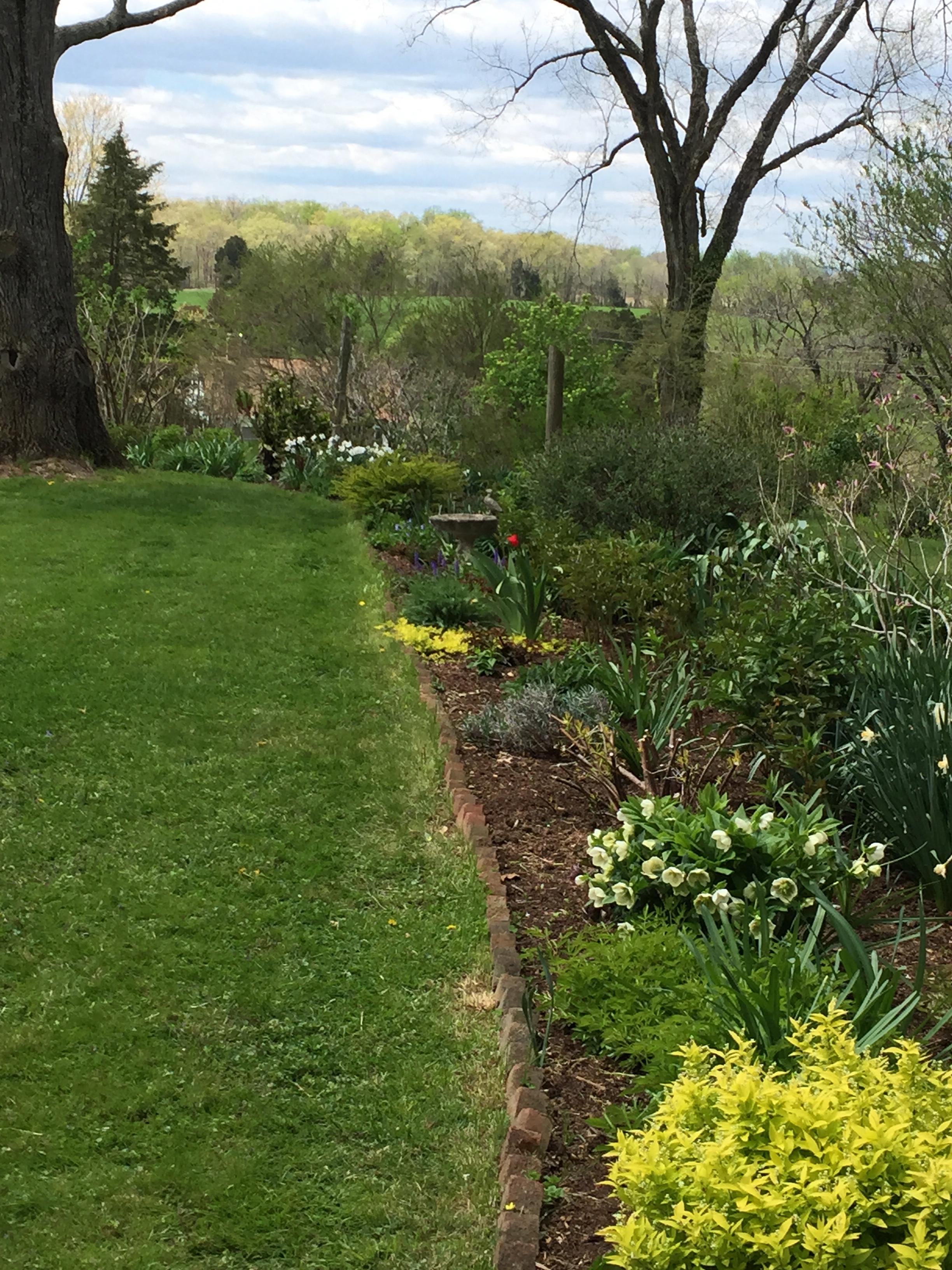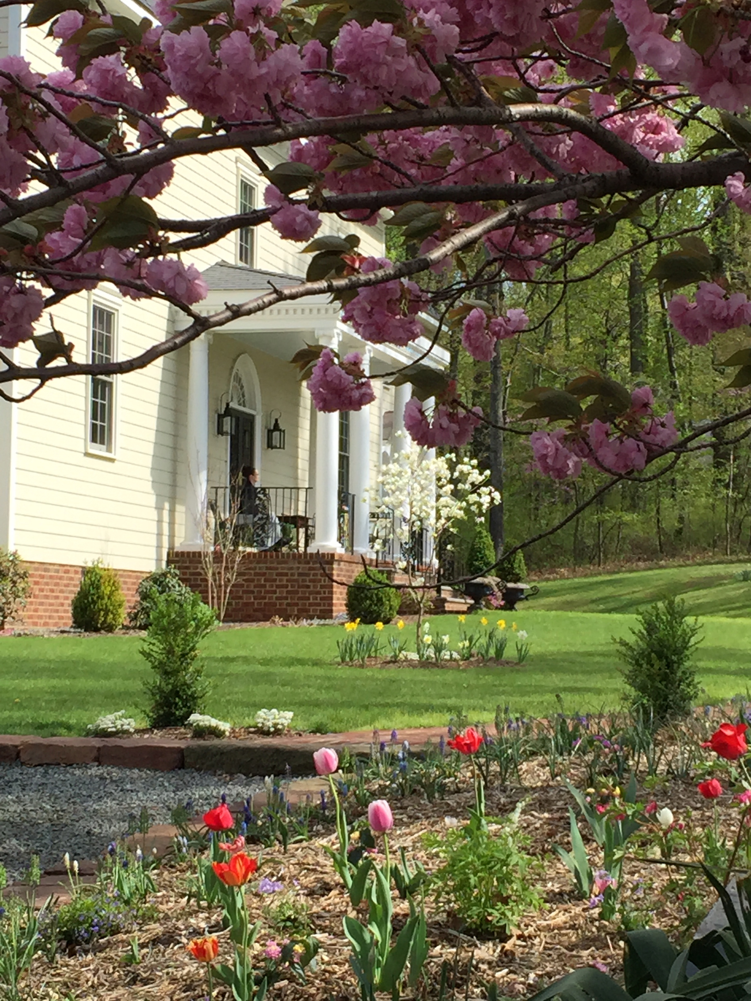 It’s been a while since I’ve added any news, but the truth is I hunkered down through the winter months and got a fair amount of writing and painting done. I knew I would have more to say once the wild daffodils sprang up by the old well on our property. I waited and watched for them. The plan was to take a picture and post it. Just one. That idea, however, got trumped by all the flowers I photographed today on the Warrenton Historic Garden Tour. This tour is part of the larger Garden Club of Virginia Historic Garden Week. All I had to do was drive down our 1.5 mile gravel road and the beautiful homes on the tour were all within a mile or less as the crow flies. The event was very well organized with plenty of docents (some friends I hadn’t seen all winter!) who were well informed regarding the details of every room in each house.
