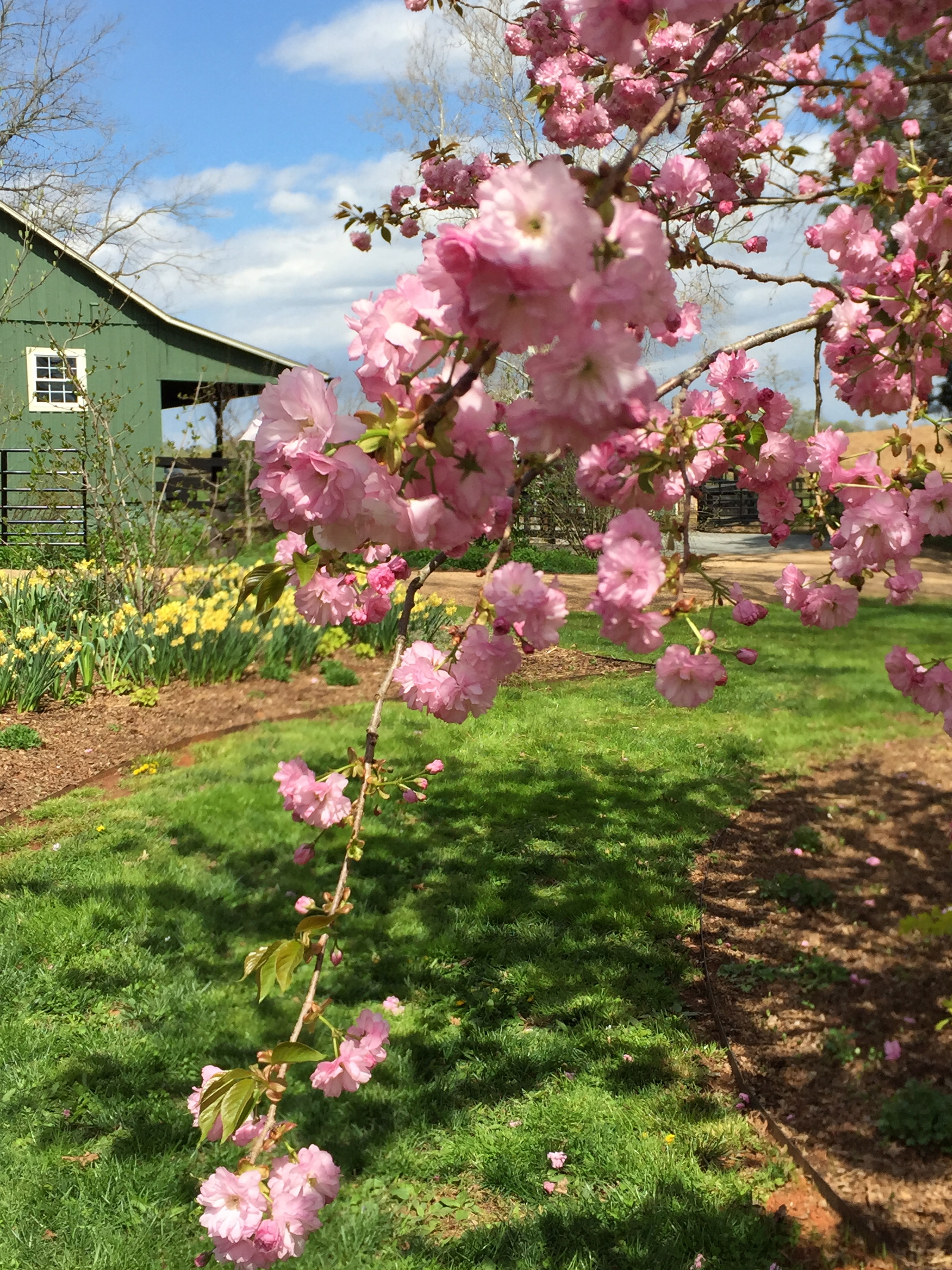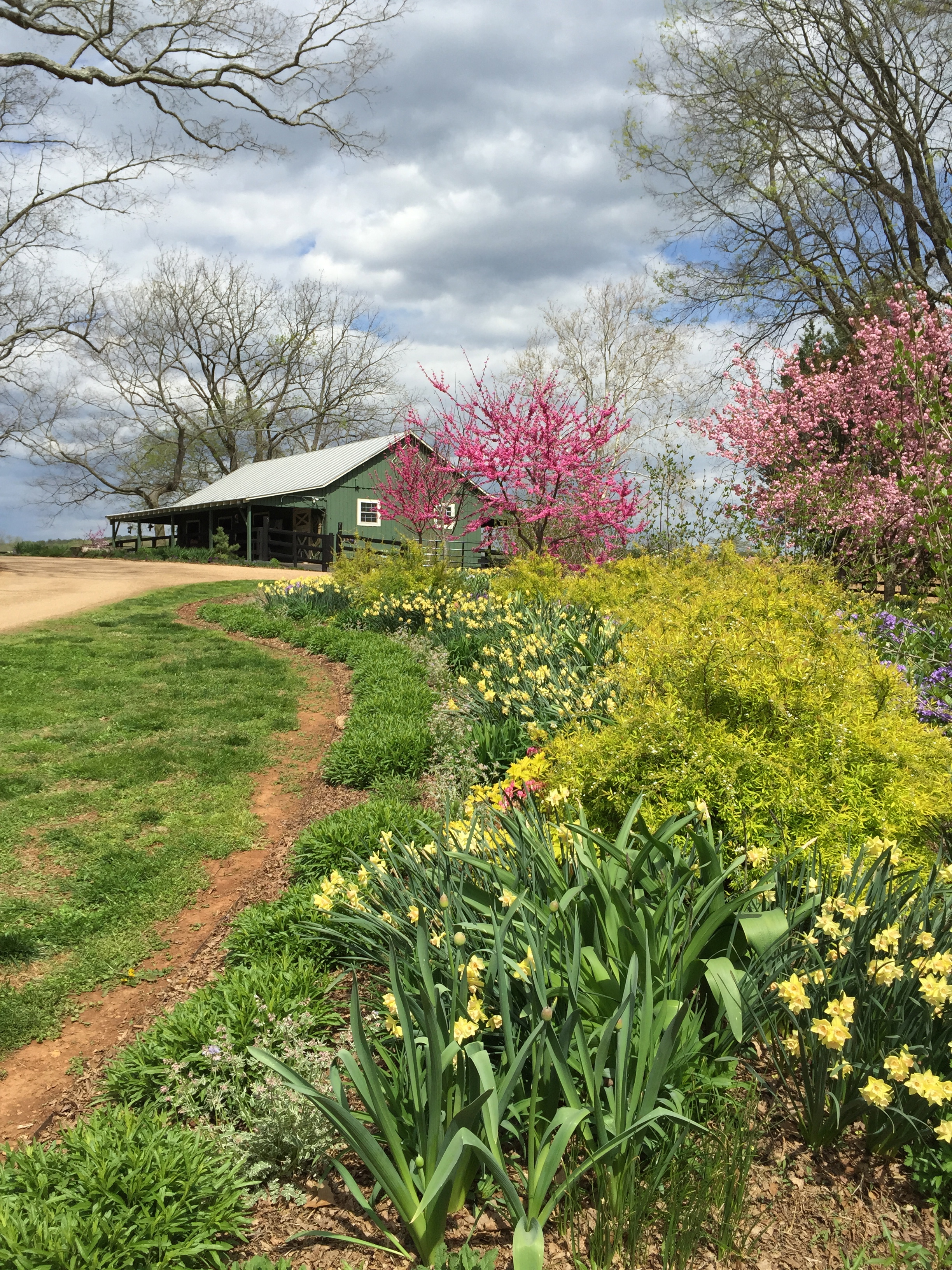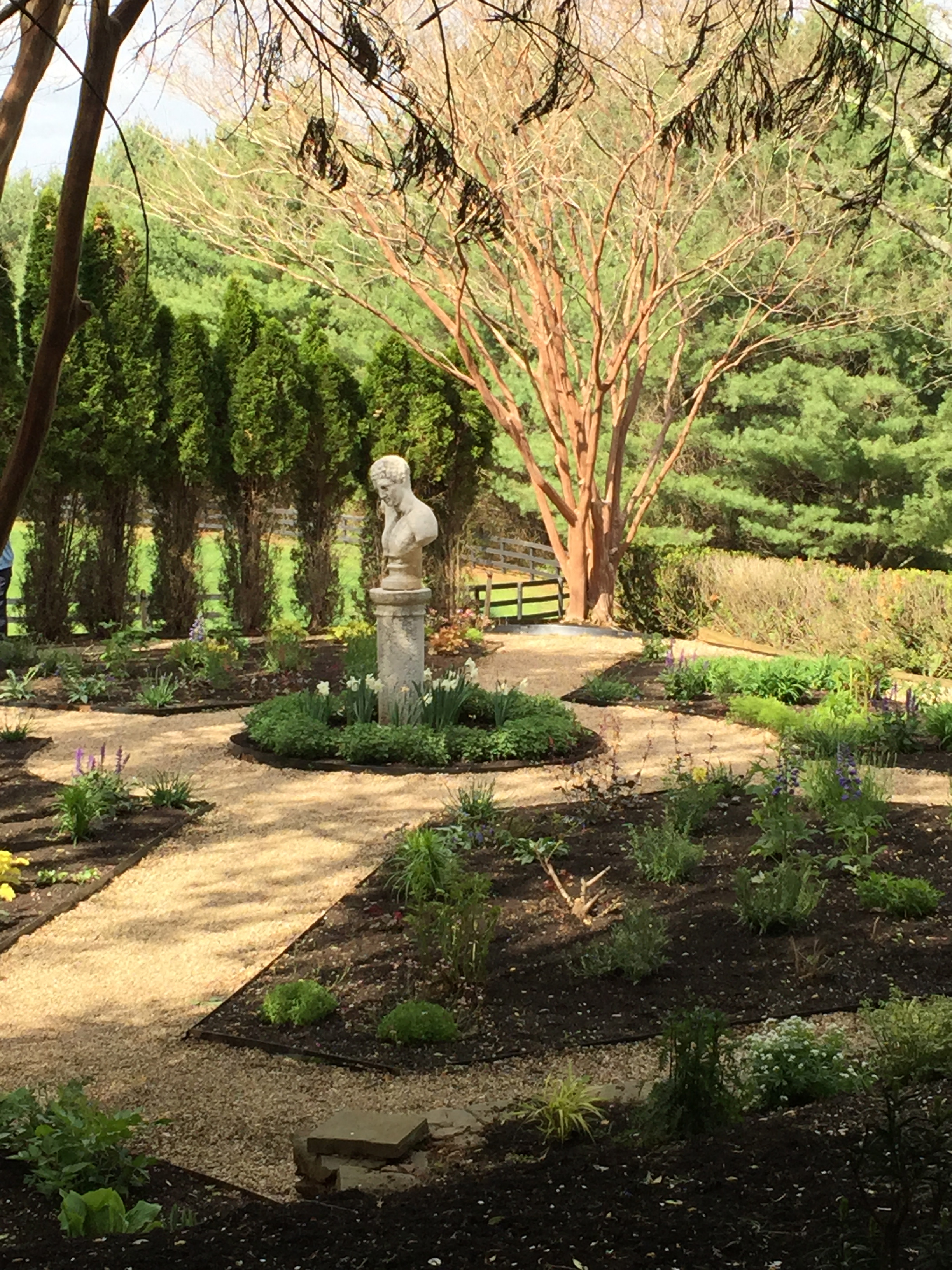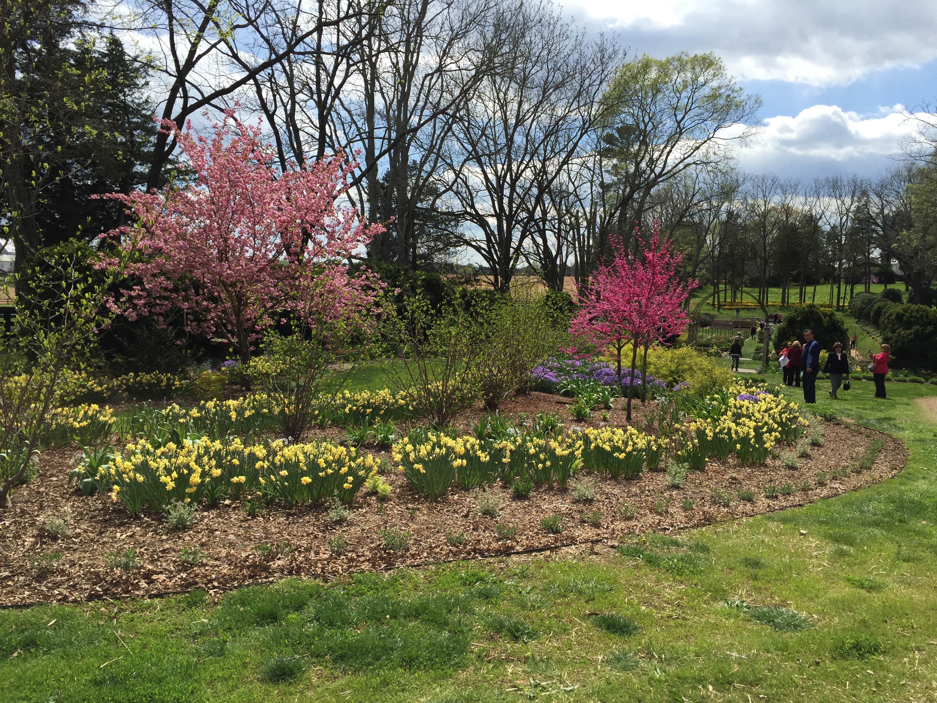 We paused on the front lawn to watch a special demonstration of the Ashland Basset Hounds before heading over to Marshfield across the road. The original 19th century Marshfield house had also burned but was rebuilt into a brick rambler with many windows, all of which have beautiful garden views. Just a couple of weeks into spring, the gardens are already in full bloom, including those that surround the barn. It was easy to get lost meandering through them, so it proved helpful having the maps provided at the entrance.