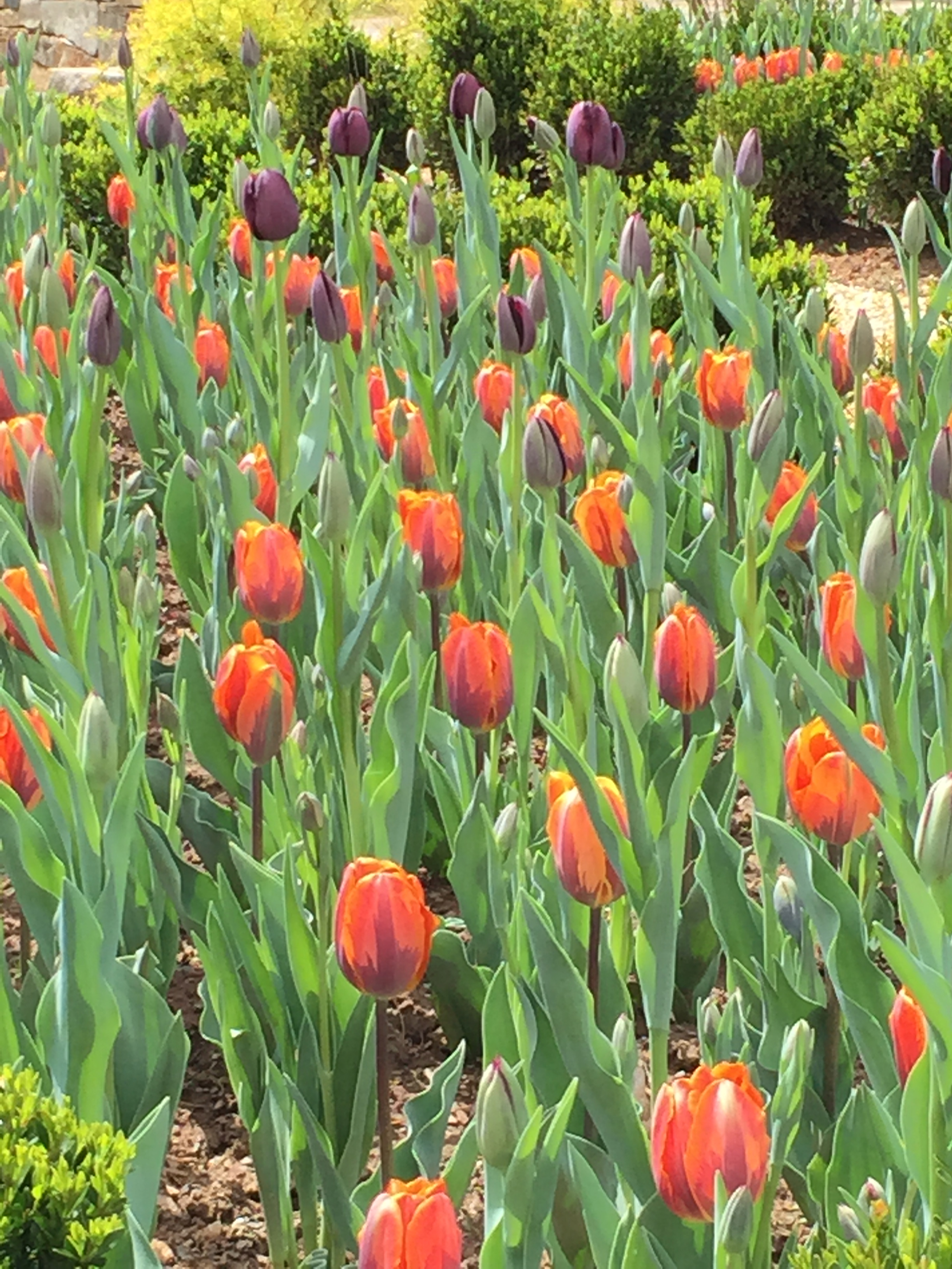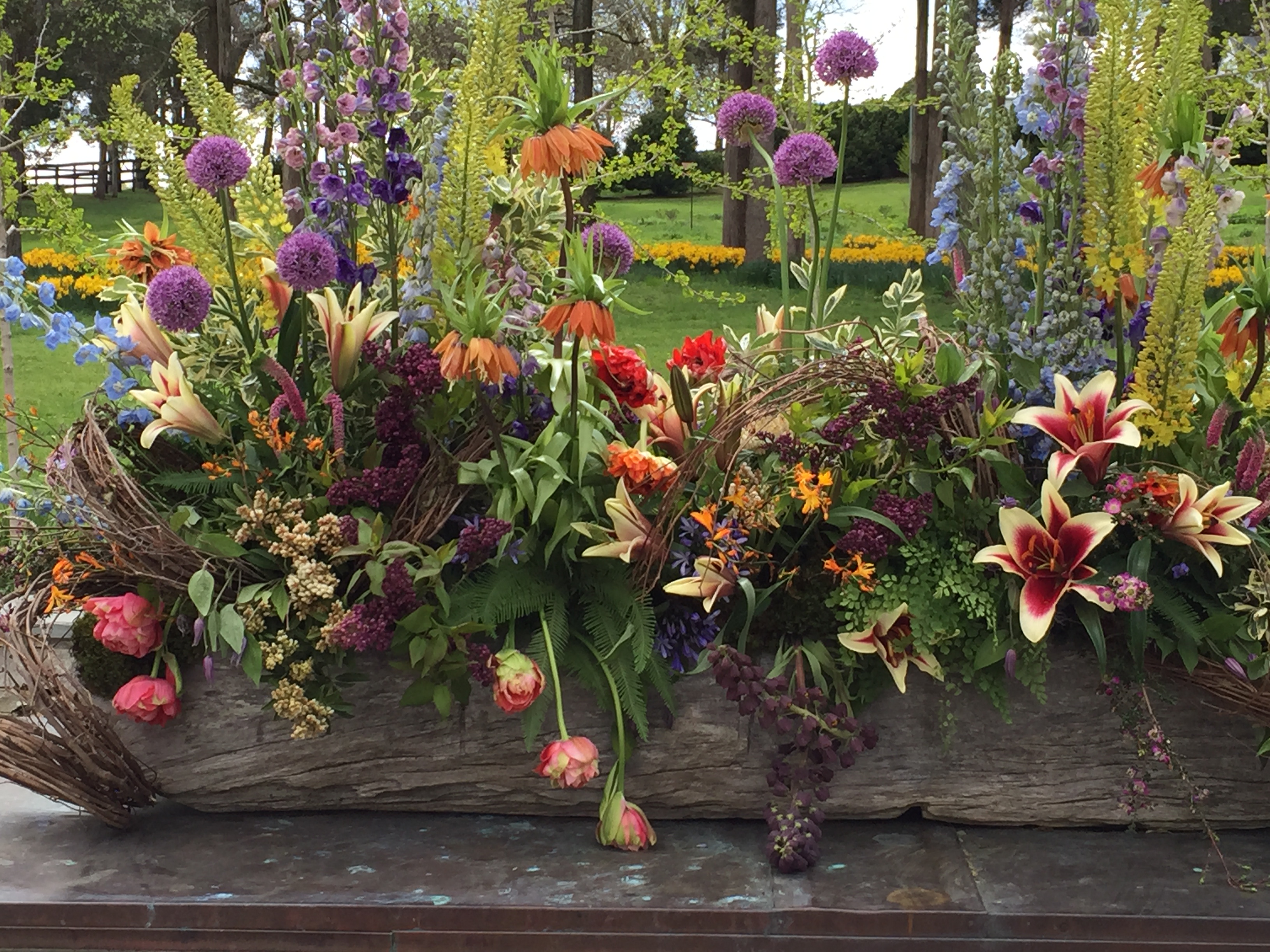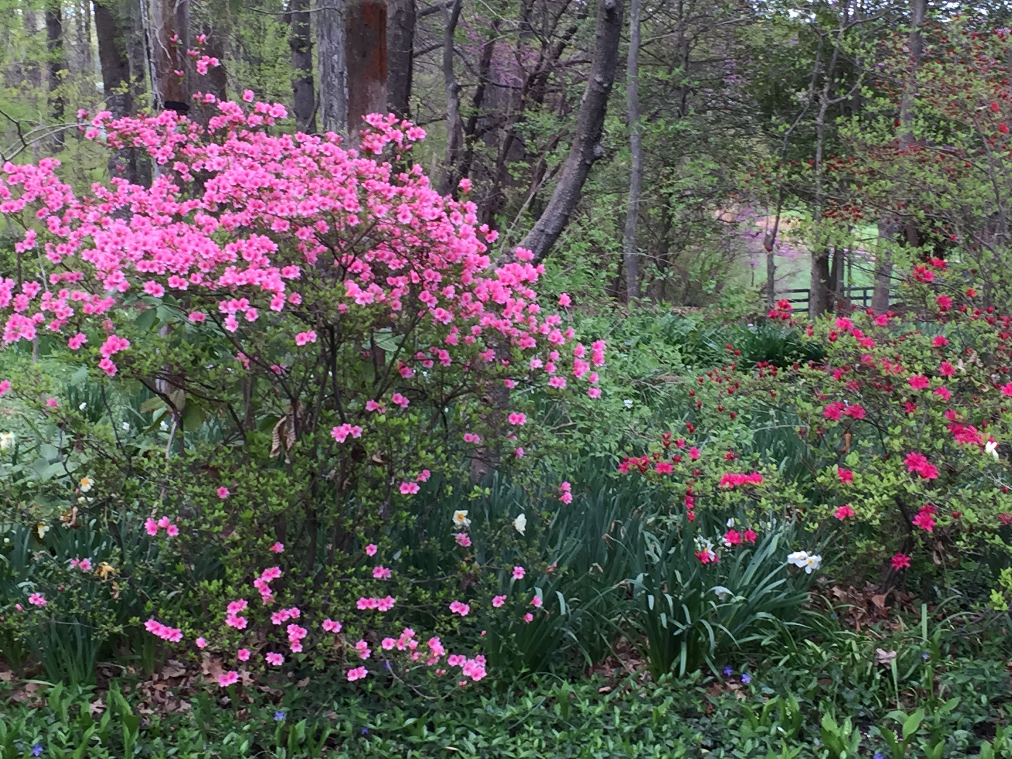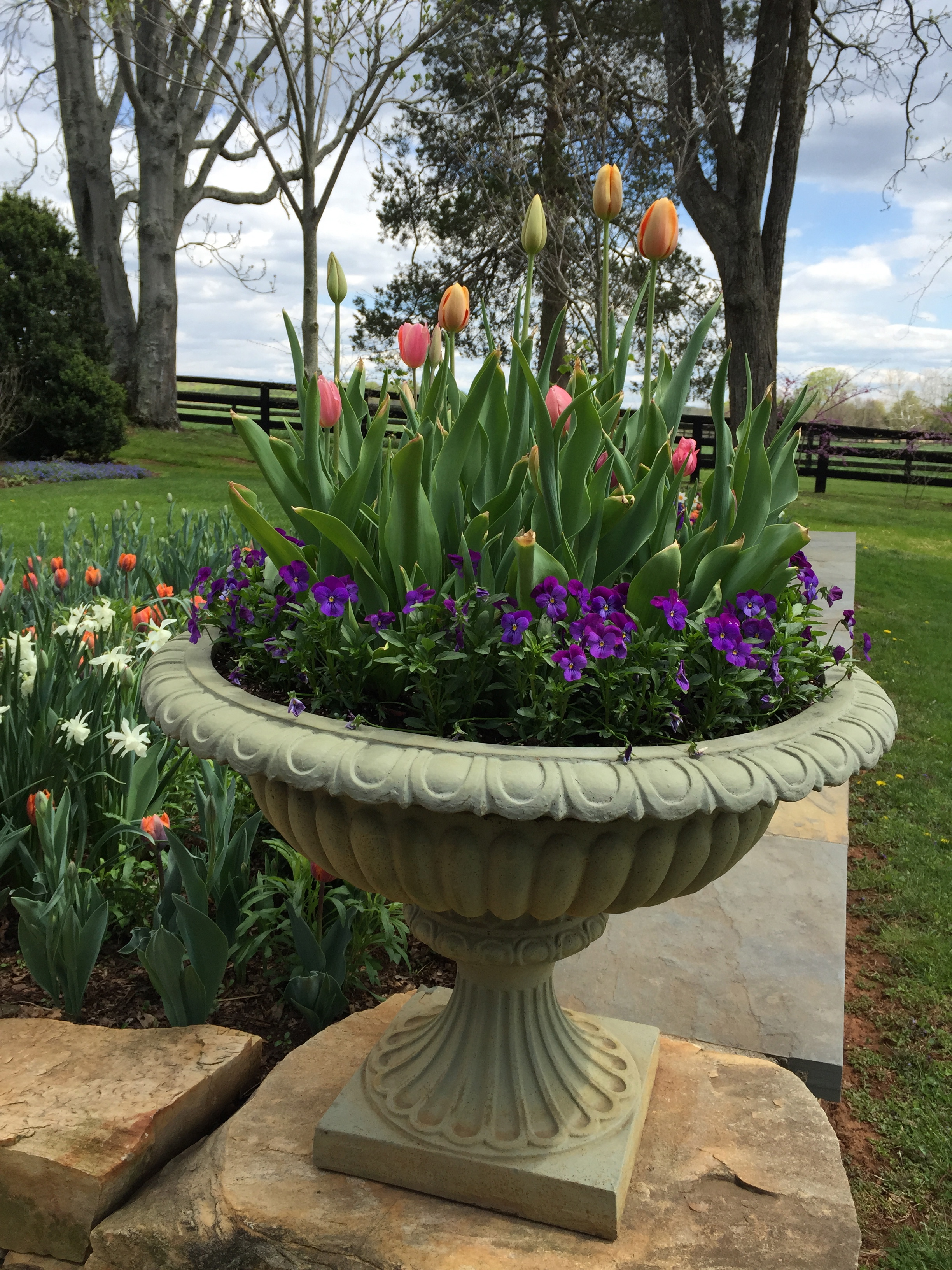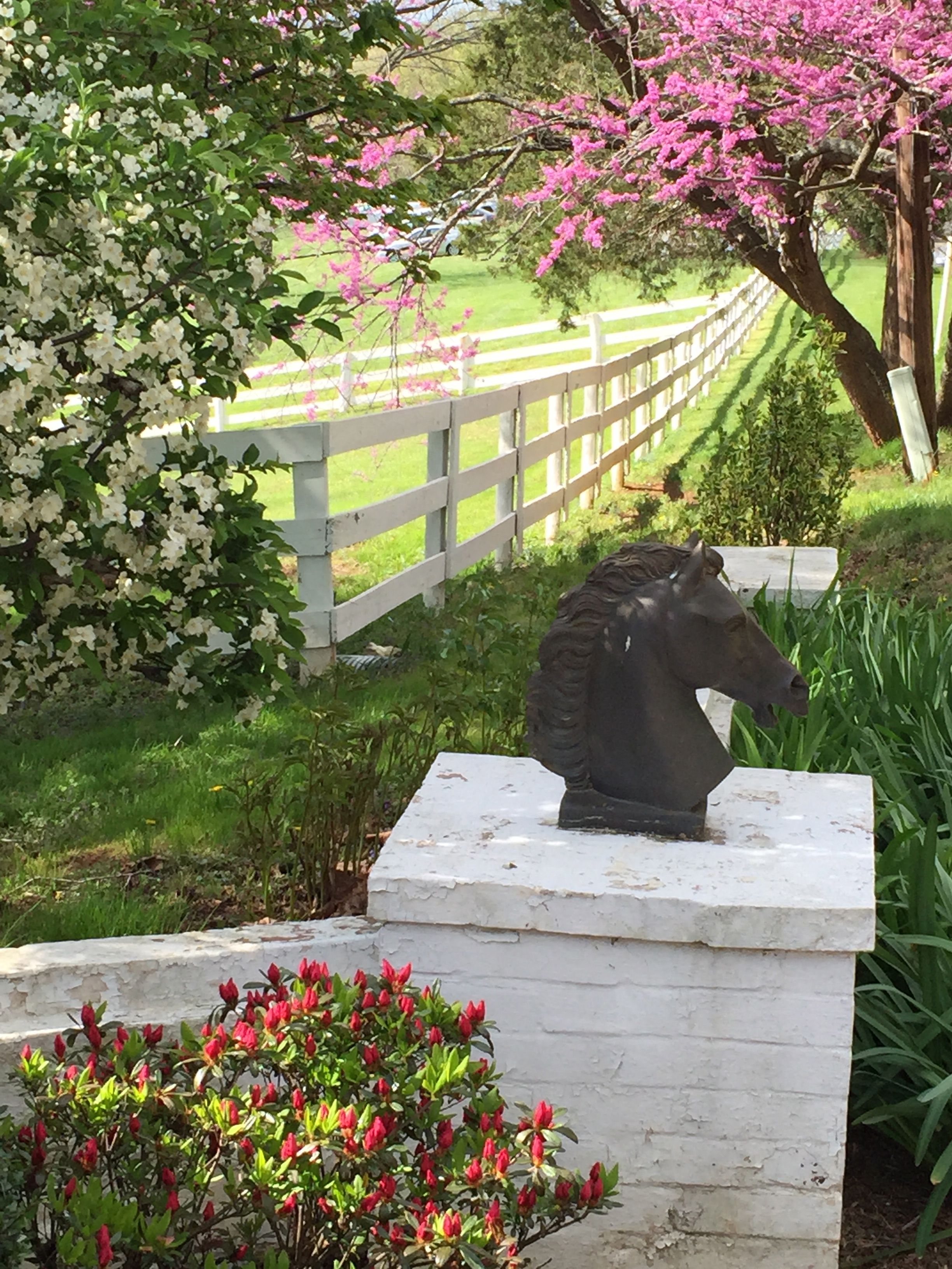 The Warrenton Historic Garden Tour was held yesterday and today, with yesterday’s attendance estimates at around 700, and today’s rumored to be higher. That’s a lot of traffic for our two-lane country road! But visitors came from far afield to see the lovely homes that were on the roster. They included The Oaks, Whiffletree Farm, Elway Hall, Marshfield, Springlea, and Leeton Forest. The homes were unique and distinctive, but all shared stunning arrangements of spring flowers ranging from simple vases on nightstands to large sprays bursting with color in every room. No two arrangements were alike, but I believe they were provided by the Warrenton Garden Club.