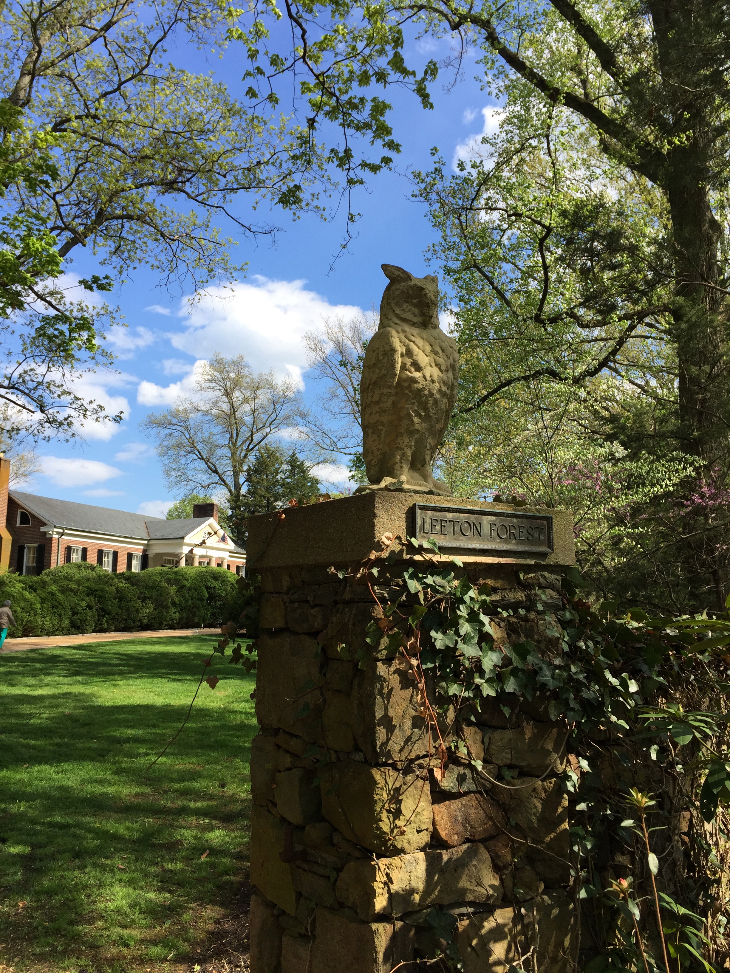Leeton Forest was beautiful in its quiet formality, a Federal house reconstructed in 1928 after the original summer home of Attorney General Charles Lee, who served under both Presidents Washington and Adams, burned in 1890. Surrounding the house are beautiful gardens with winding paths and expansive views in all directions that include the Blue Ridge Mountains.