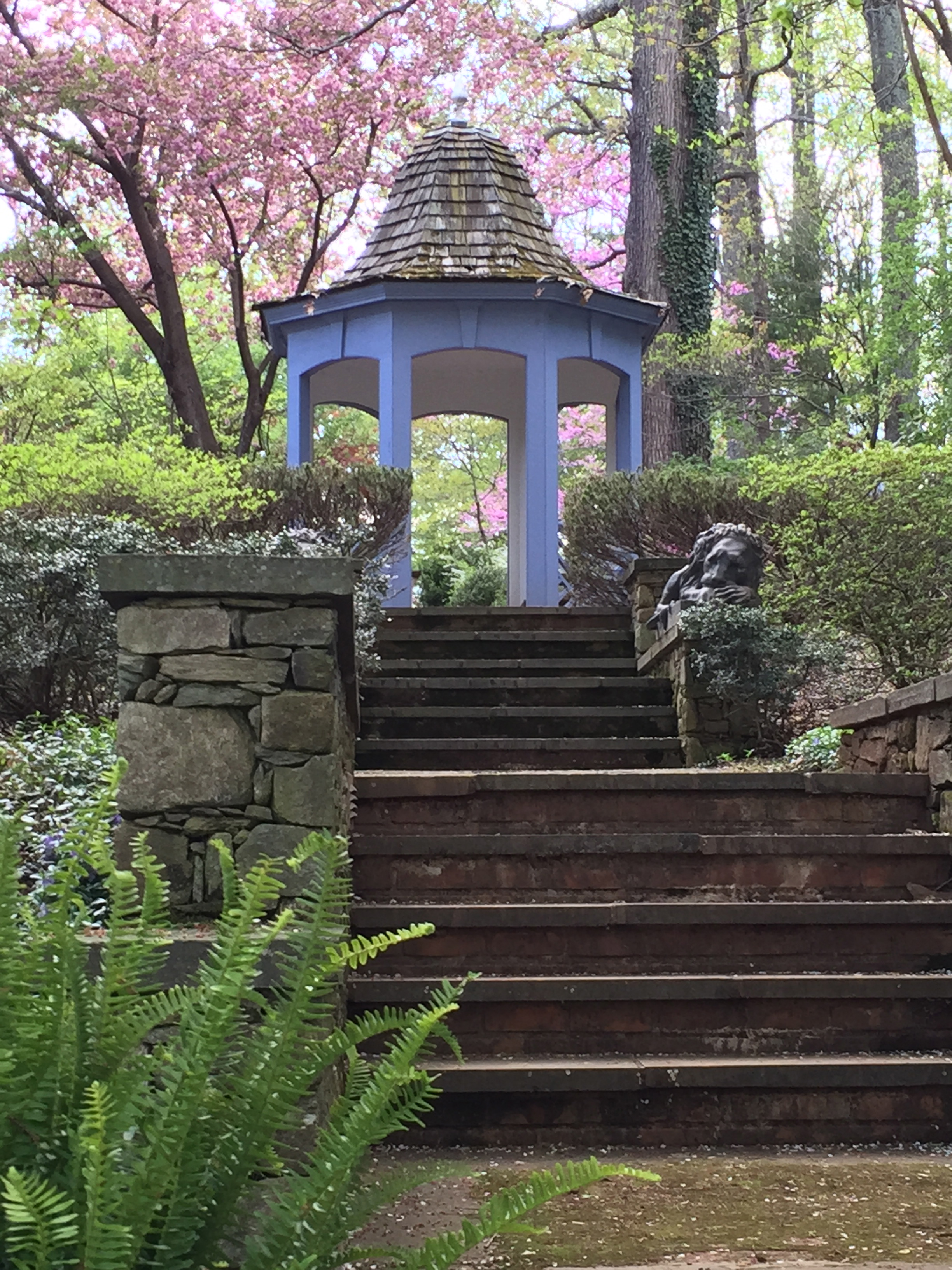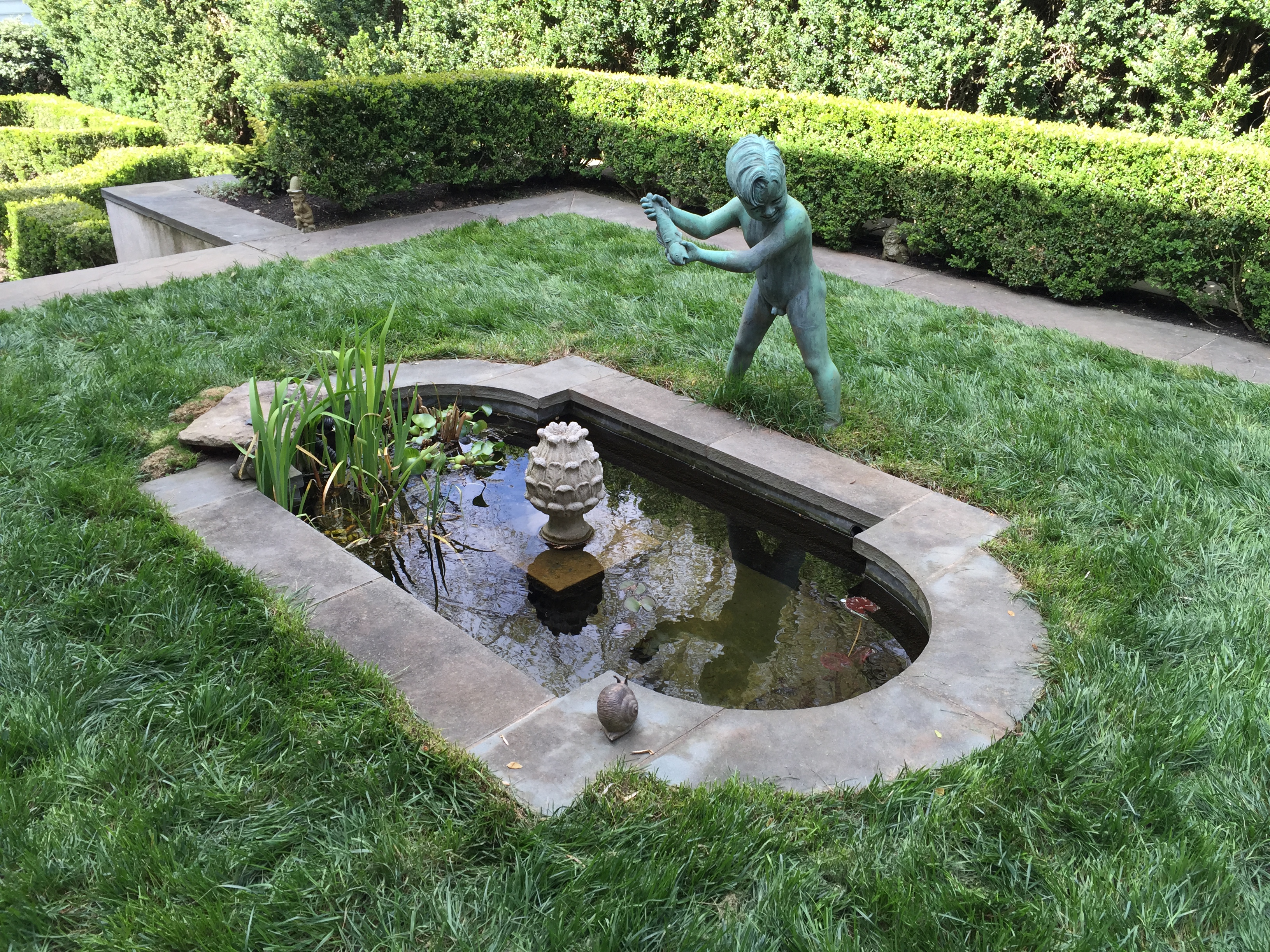 Elway, a sprawling Edwardian home originally built for the Spilman family perhaps a quarter of a mile down the road was, by contrast, quite different. The owner, Barry Dixon, a renowed interior designer has a unique style that inspires many. For all the lovely mix of modern and classical furnishings, I admired his extensive book collection, kitchen and butler’s pantry the most. The kitchen floors (yes, the first thing I check out, though I would want no one to look too closely at mine) were large imported tiles from France, according to the docent, and poured concrete counters designed to complement the extensive collection of his grandmother’s china, again, according to the kind docent. The home also boasts an extensive collection of classical statuary, orbs of all types, and many charcoal drawings reminiscent of the old masters. These were only some of the things I noticed while trying to take it all in.