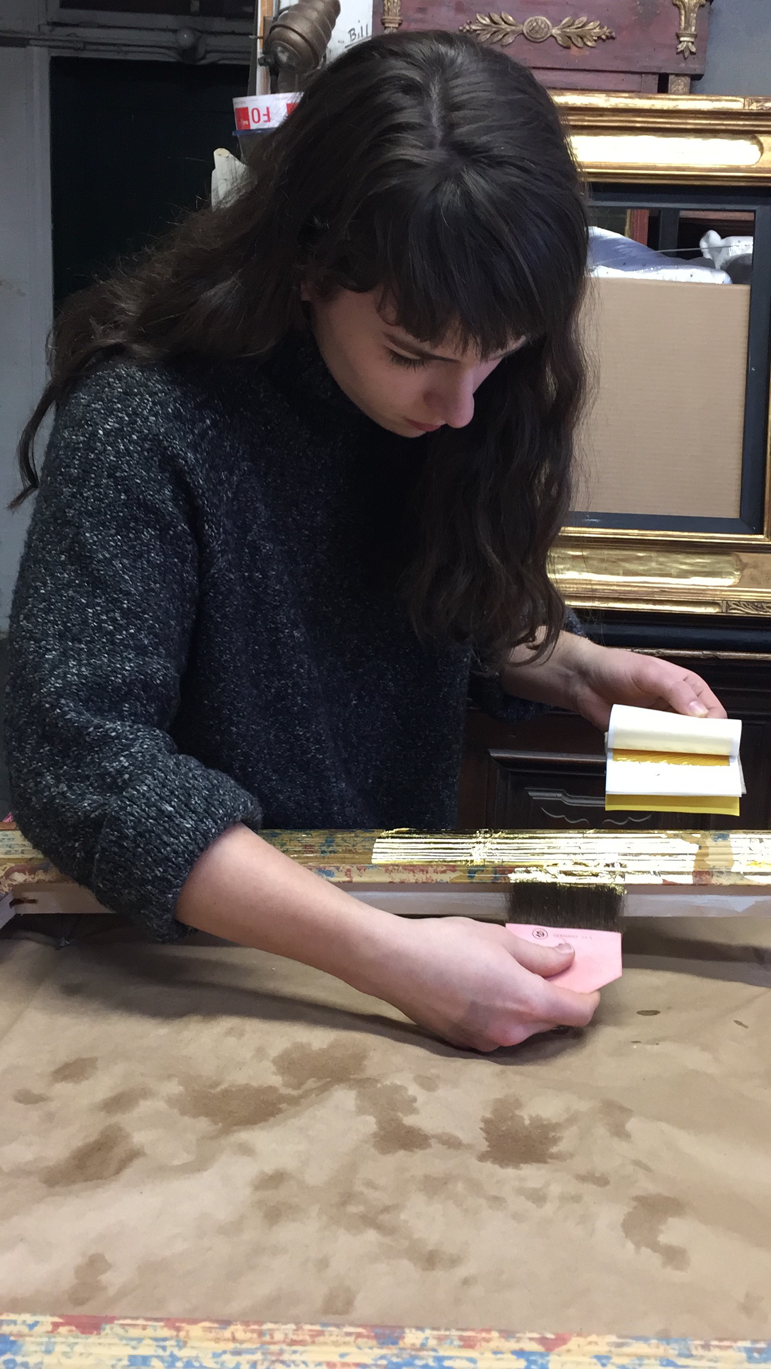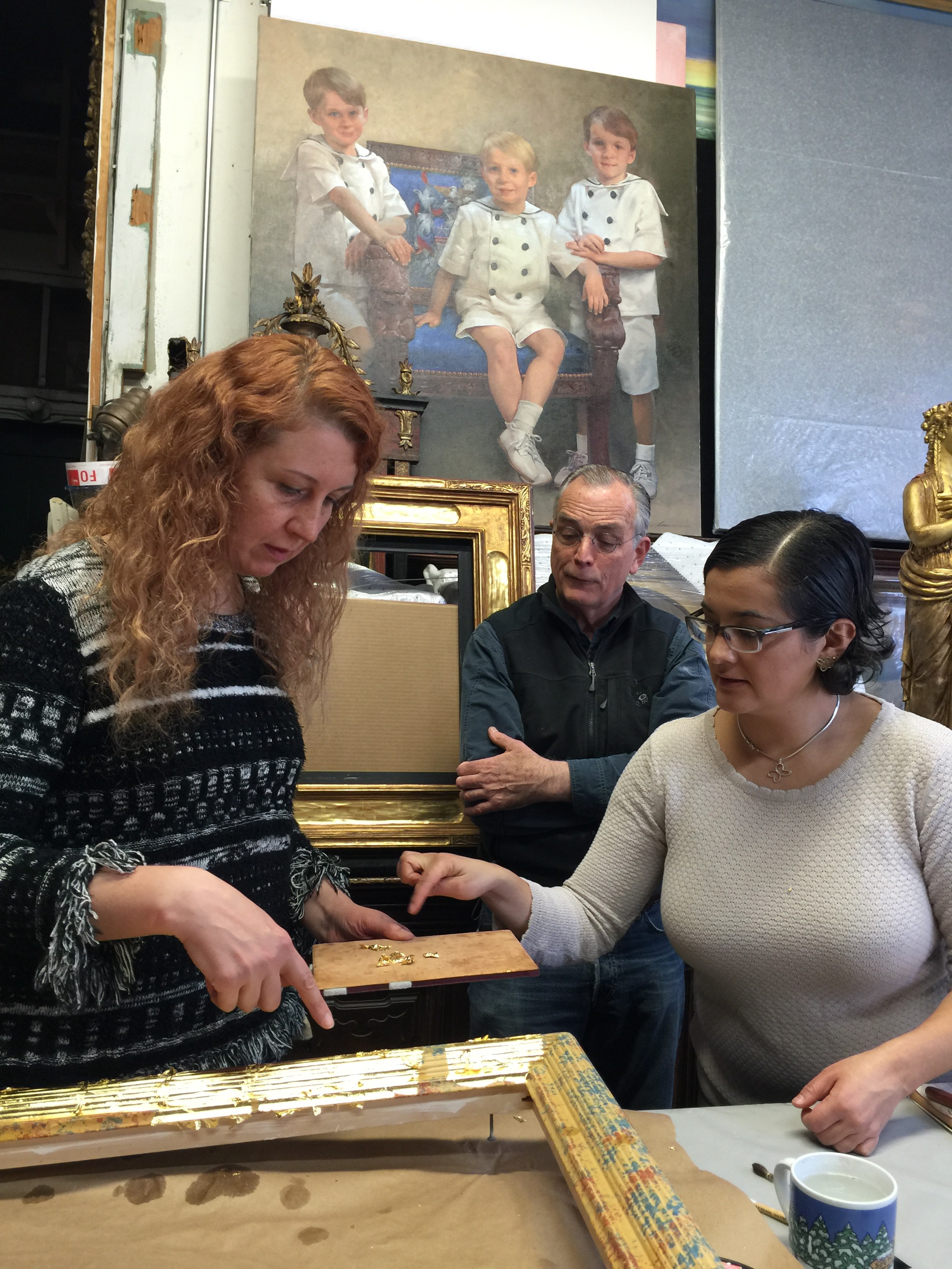 After attending an inspiring workshop at Gold Leaf Studios in Washington, DC, led by renowned master framer, Bill Adair, I came away with a new appreciation for all things gilded. I love frames the way many women love shoes, so when I found myself in this early twentieth century carriage house-turned-studio filled with frames floor to ceiling, I tripped over myself staring at them. I was as distracted by all that glittered in this treasure trove workshop, as I was by ideas for the sequel of House Key. After all, Emaline’s portrait must be properly framed…