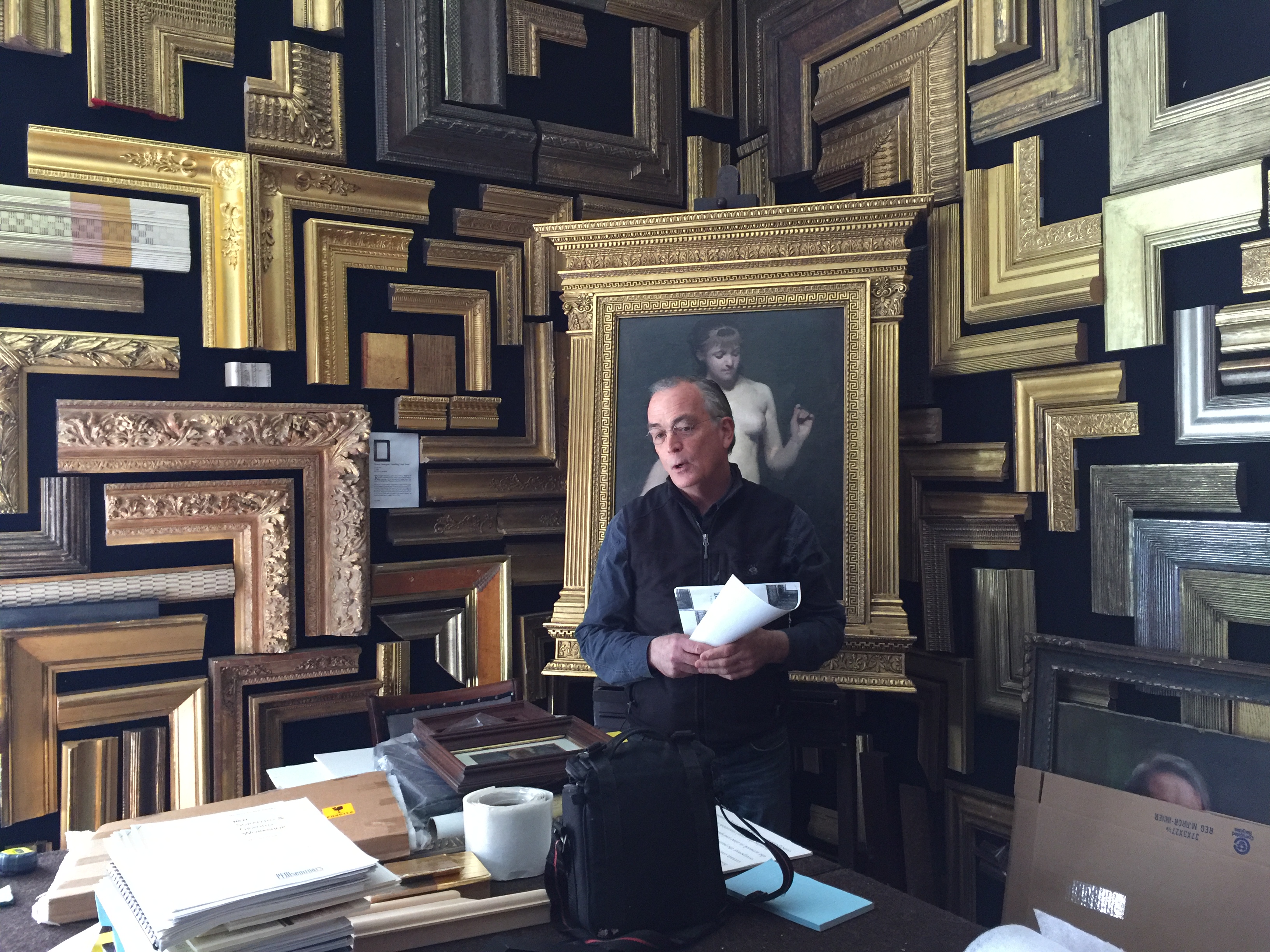 Since my intern days at the Herbert F. Johnson Museum of Art, and later having worked briefly at a framing gallery after college, I habitually study frames on works of art and consider the importance of their choice and function. Among many of the quotable things Bill said during our workshop, the one that struck as most fundamental is that “the frame is the adroit mediator between the art and our world.”