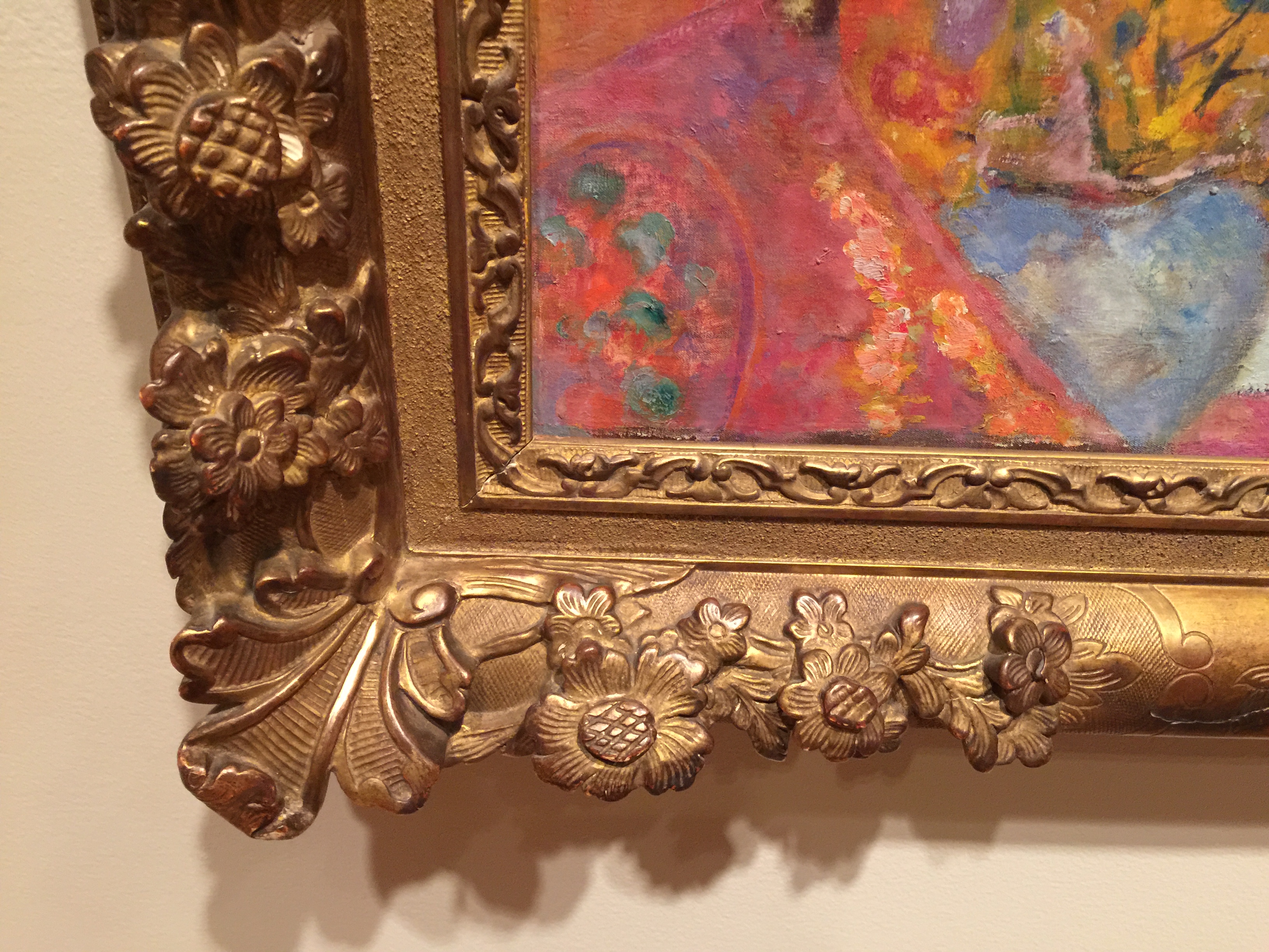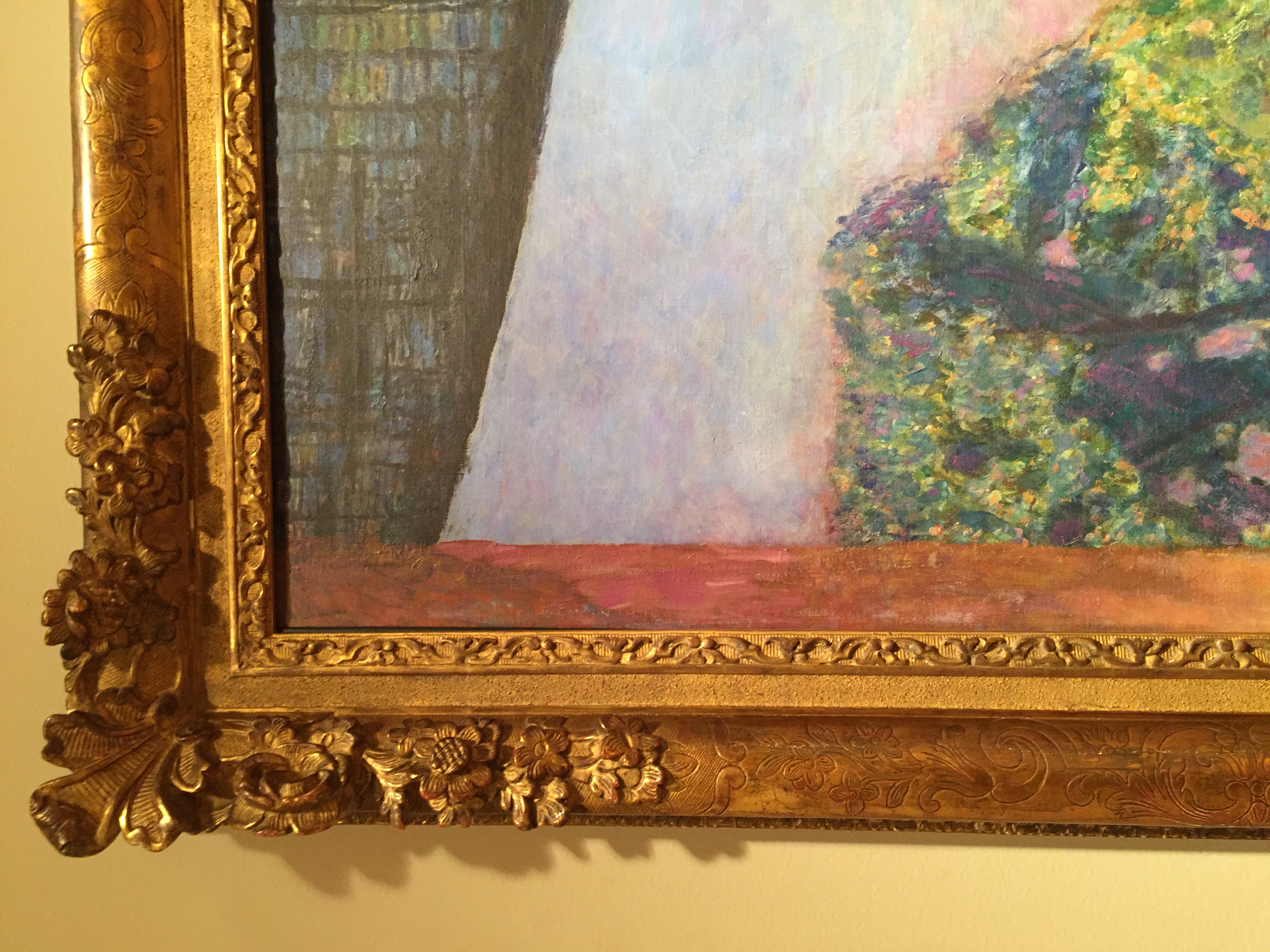 There, we studied various frames, to the apparent befuddlement of the guards, as we spent more time discussing the frames around Cezanne’s The Garden at Les Lauves and Picasso’s Still Life with Glass and Fruit, than the paintings themselves. Bill observed, “Frames give authenticity, ethos, mojo to paintings, especially modern art.” Perhaps that is why gilded frames will never become outdated but will preside with quiet authority over our art, even as it changes and evolves around us daily.