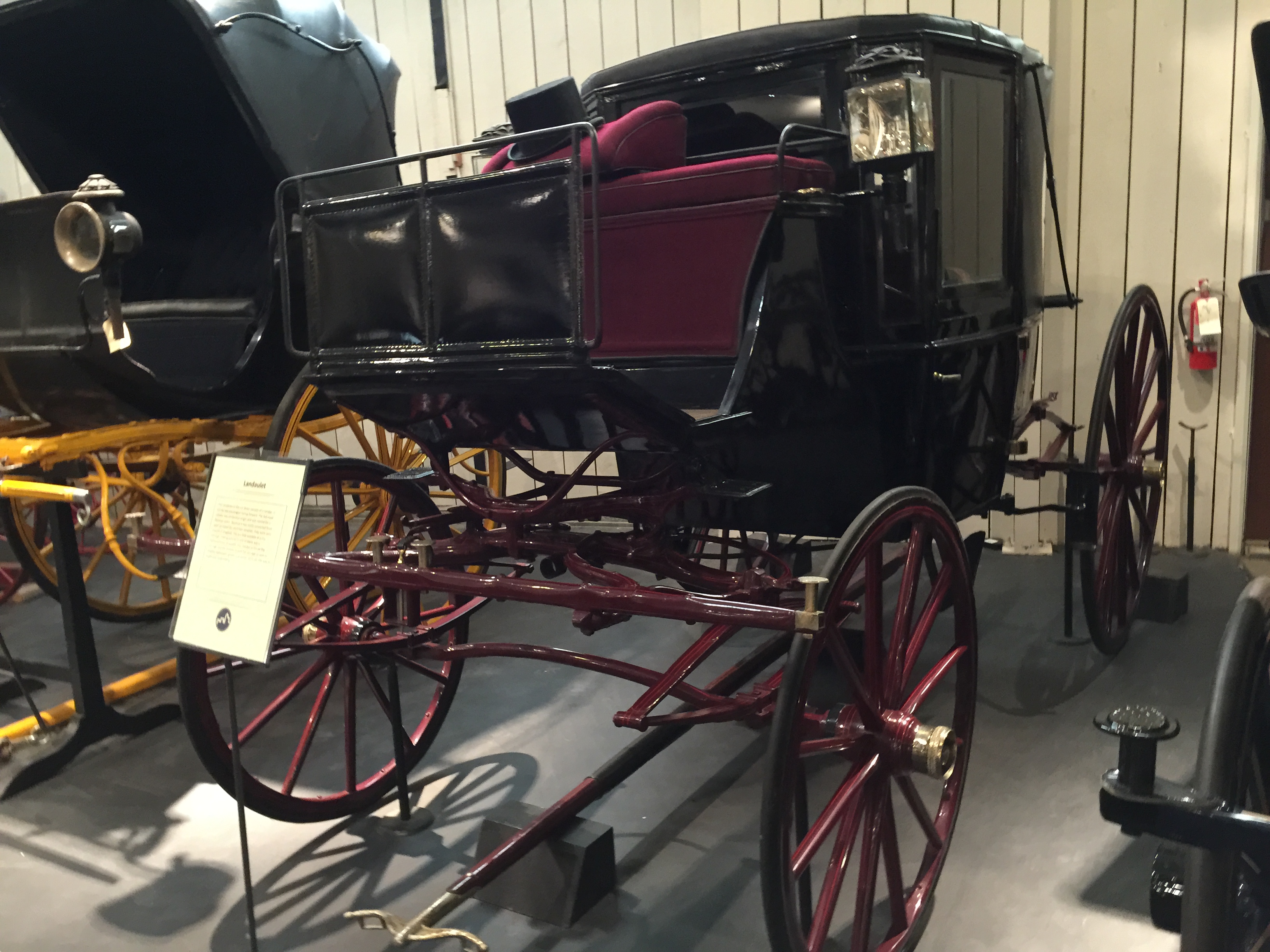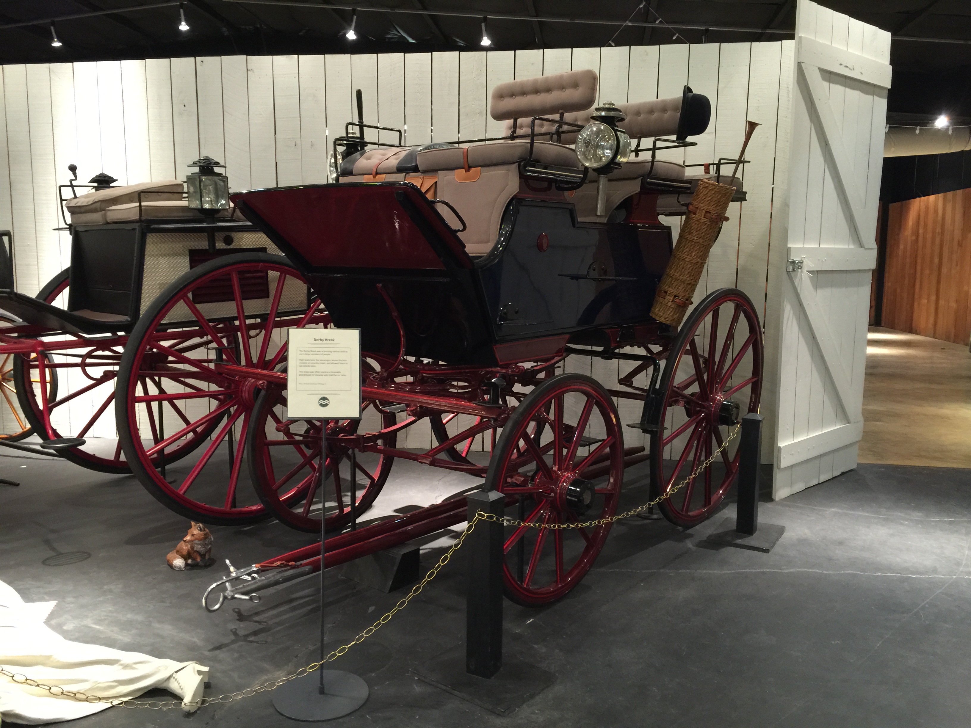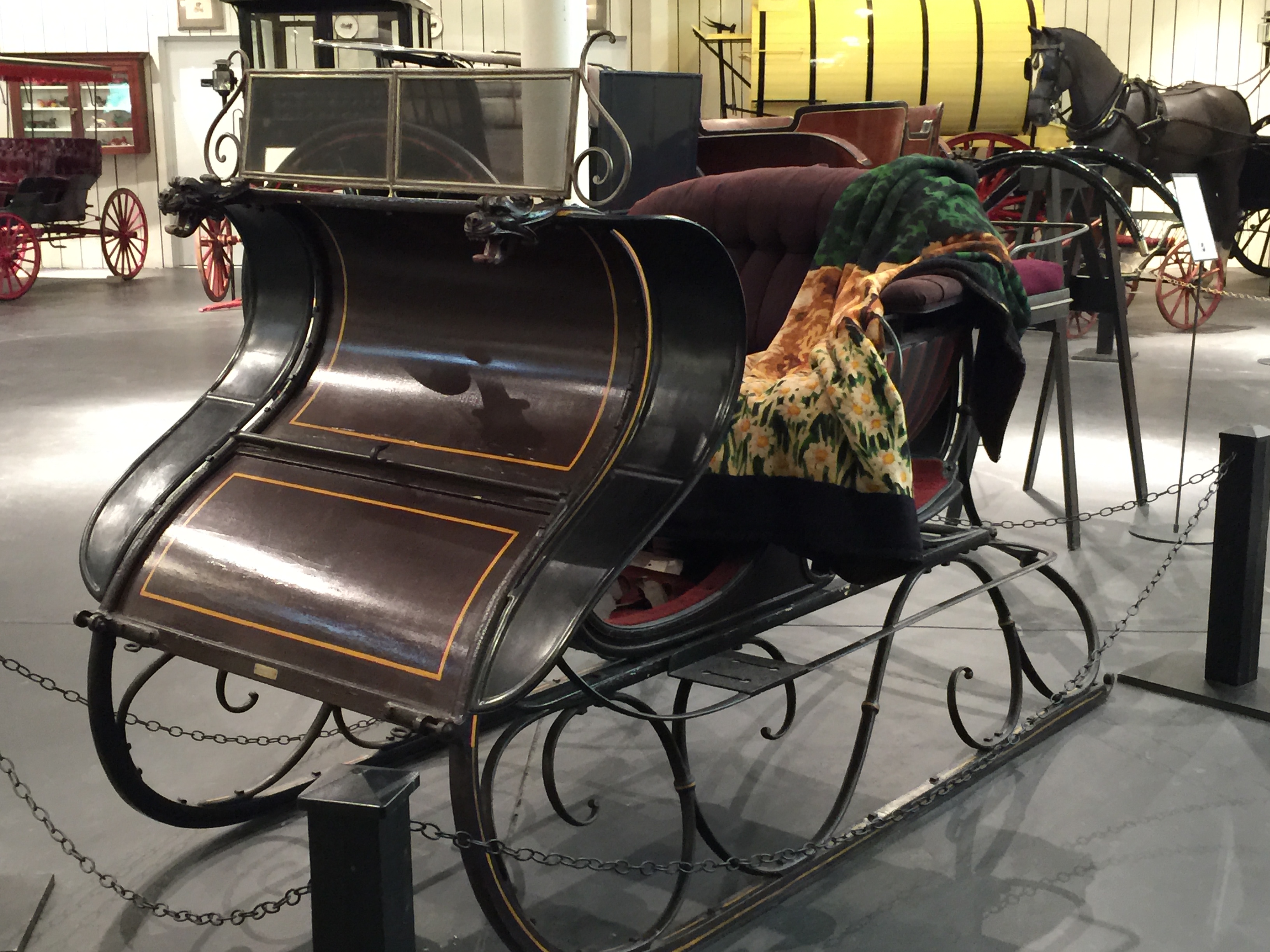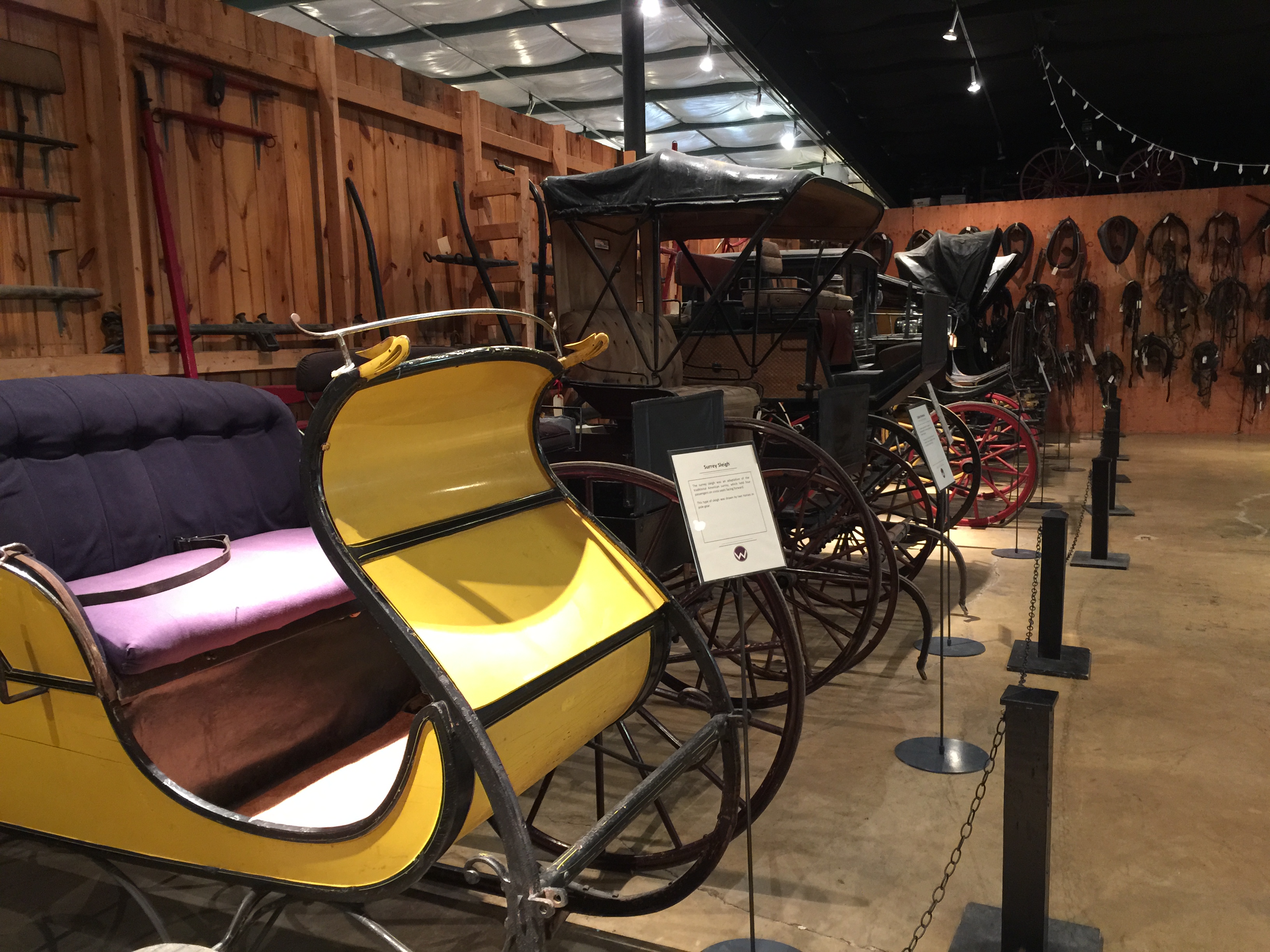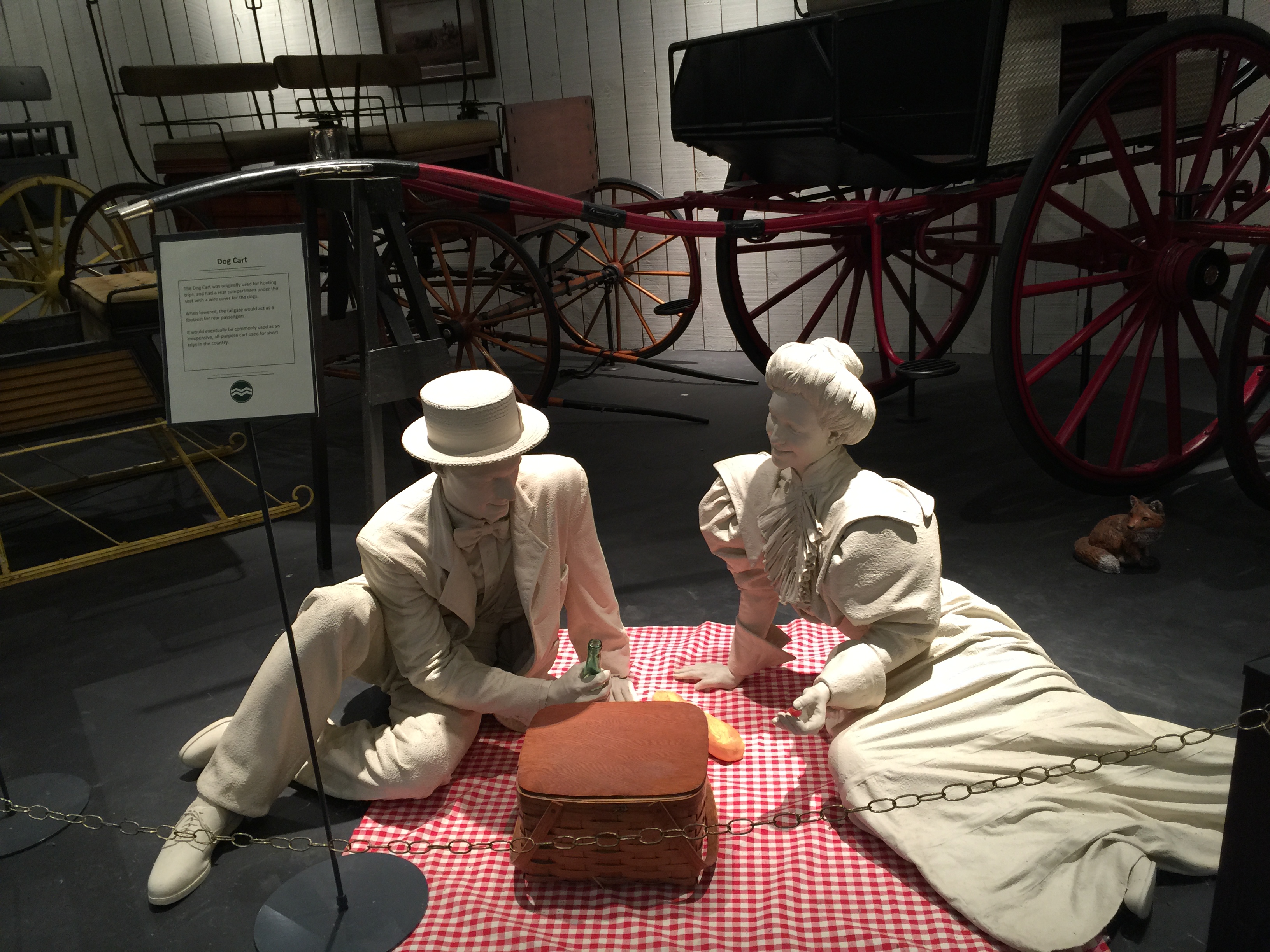 We left the mansion and walked through the old stables to visit the Winmill Carriage House which contains 40 horse-drawn carriages, including everything from a steam pumper wagon to a hearse. Having written about several carriages in House Key, I was interested to find their respective models and was not disappointed. Photographs were not permitted in the manor, but allowed in the Carriage House. Nonetheless, the carriages, though neatly parked next to one another could not be photographed in their entirety since there were so many of them packed in the available space.